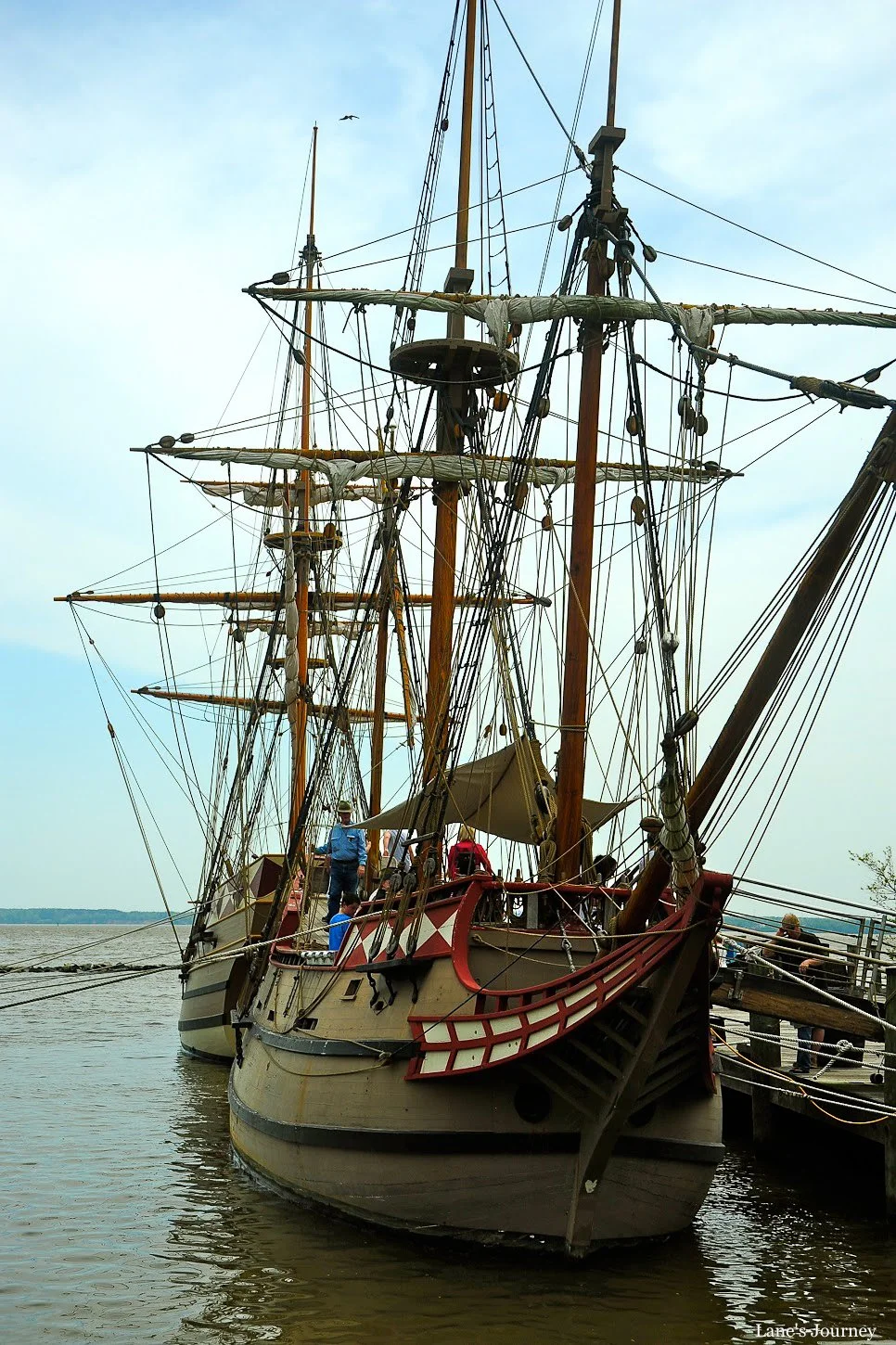 Replicas of the two ships that brought the settlers from England.